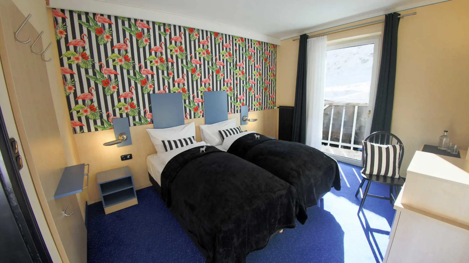 Hotellets indretning forener moderne design med afslappet luksus. De lyse, skandinavisk inspirerede omgivelser og brugen af naturlige materialer skaber en varm og rolig atmosfære – perfekt til at koble helt af efter en dag i sneen. Du kan vælge mellem elegante dobbeltværelser og rummelige suiter, alle med komfortable senge, eget badeværelse, TV og gratis WiFi. Mange værelser har desuden storslået udsigt over bjergene.