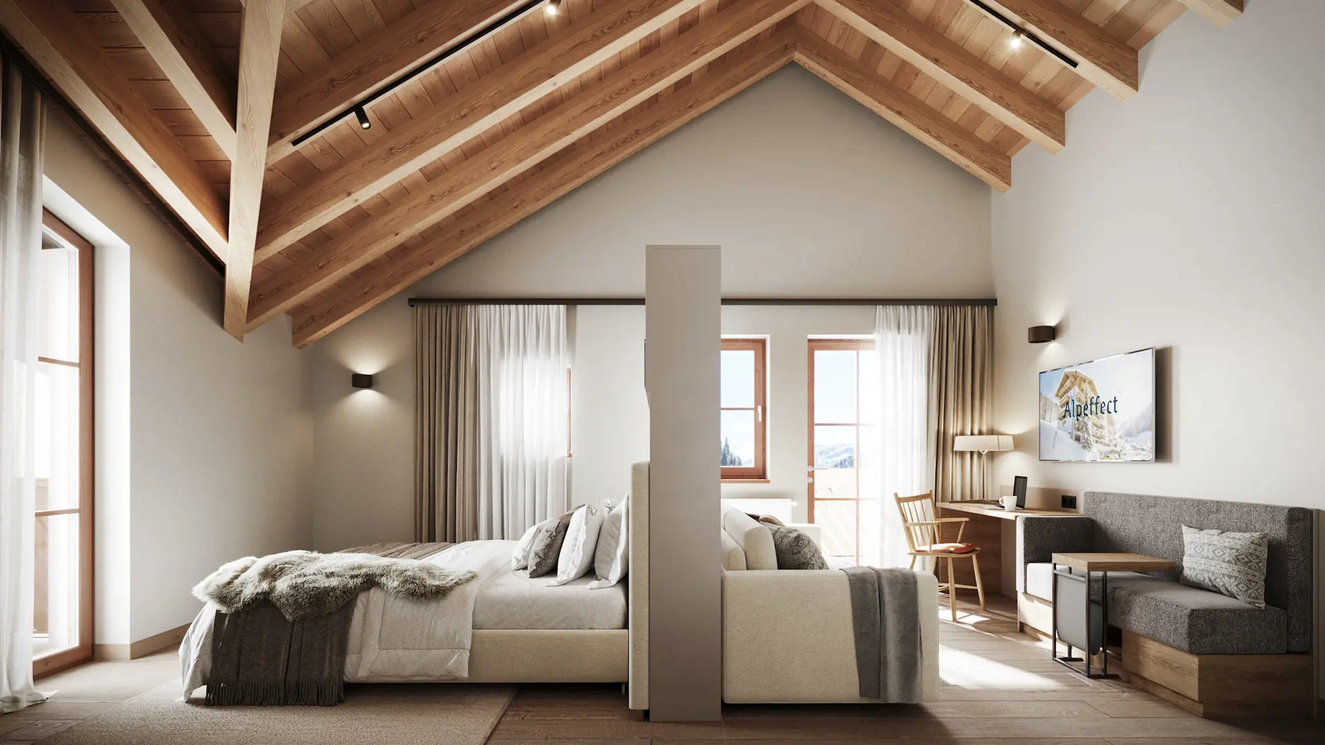 NYHED: Til vinter tilføjer vi 3 helt nye top moderne penthouse værelser på Hotel Enzian. Bo på et skønt 4-stjernet skihotel i absolut særklasse med en fremragende beliggenhed i 1.350 meters højde. Hotellet ligger direkte overfor pisten og hovedliften, som tager dig direkte op i skiområdet. Der er adgang til hele seks lifter indenfor 200 meter fra hotellet.