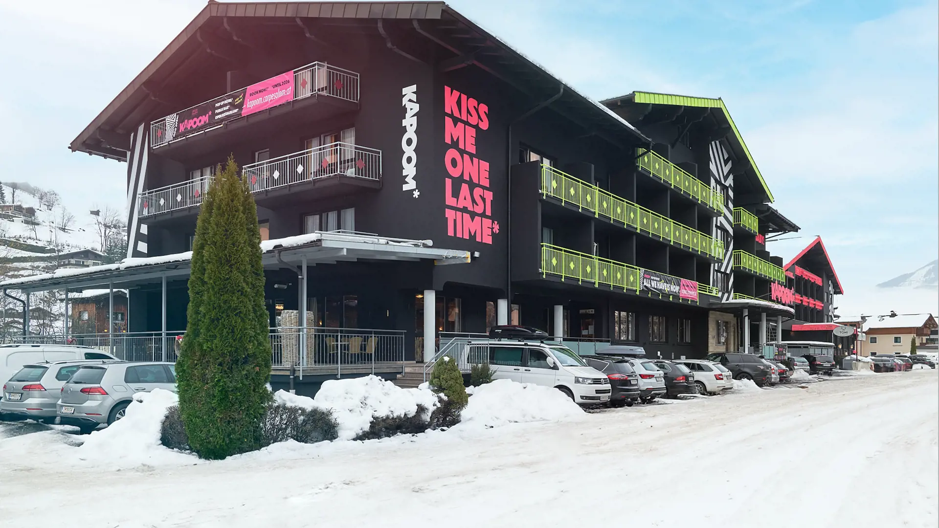 Carpe solem KAPOOM er et livligt, farverigt og iøjenfaldende hotel - et pop-up hotel midt i Kaprun! Det tidligere Hotel Toni er blevet omdannet til dette unikke hotel, og vil du nå at opleve denne ekstraordinære pop-up oplevelse, skal du ikke vente for længe, for dette koncept eksisterer kun indtil marts 2026, hvor hotellet skal ombygges.